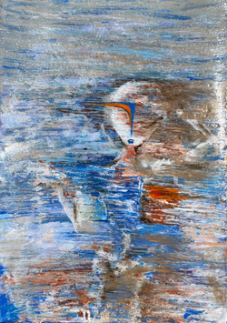 Recontextualizing sculpted forms offer a glimpse into the infinite possibilites of dimensions. REBELLION, 2024 Acrylic, metallic pigment, sculpted raffia on canvas (5) 4x4